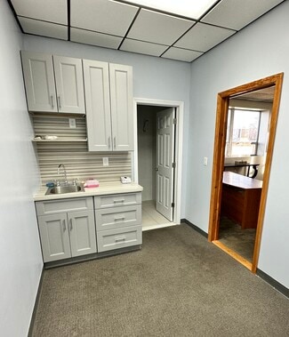 The first floor consists of approximately 6,250 square feet of warehouse space with 16-foot clear ceiling heights and three drive-in doors (12' x 14'), providing efficient loading and operational flexibility. The second floor features approximately 6,250 square feet of office space, including a large open area with cubicles, a dedicated executive suite, and a conference room, creating a professional and efficient work environment.