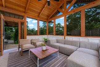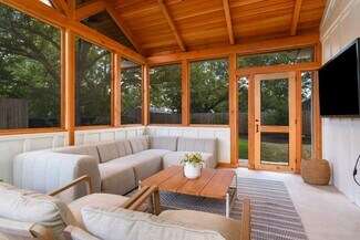 Welcome to this charming Hill Country style farmhouse nestled on an oversized lot just a short walk from historic Main St. The property underwent a meticulous transformation in 2023, blending modern comforts w/ timeless character. Step inside to discover a spacious open concept living, dining & kitchen area that features soaring ceilings, rich wood floors, exposed beams & a stunning floor-to-ceiling stone fireplace flanked by cabinetry. The chef’s kitchen is a dream, boasting solid surface counters, a Sub-Zero refrigerator, stainless steel appliances, a Wolf gas range, a wine refrigerator & a large sit-at island perfect for cooking & entertaining. This home offers two primary suites, each with beautifully renovated bathrooms & ample closet space. A flexible sunroom overlooks the lush, perfectly landscaped yard providing a peaceful retreat. The impressive screened porch offers even more space to relax & enjoy the outdoors. With abundant storage & thoughtful updates, this property is the perfect blend of luxury & convenience. Don't miss this exquisite farmhouse. More Information: https://www.adamccarroll.com/listings/205-e-centre/
