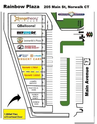 Rainbow Plaza is a neighborhood center, co-tenanted with a host of long-term tenants that serve all type of customer needs: Leonardo's Pizza, Orange Theory Fitness, MyEyeDr glasses and exams, Dentist, Chiropractors, Nail Salon, Convenience Store, Party Balloons, SunnyDaes Ice Cream, Dry Cleaner and Tailor. Located on the Western border of Norwalk and New Canaan, Main Ave is a major retail and office park corridor, close to schools, all with very easy access from every main artery; I-95, Merritt Parkway, Route 1 and Route 7 Connector