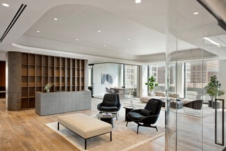 The building presents 100,000 square feet of contemporary office space. Surrounded by perimeter private offices, enjoy column-free open environments that are perfect for flexible tenant fit-outs, shared workspaces, and enclosed meeting rooms. The property’s exceptional 12th-floor penthouse is bordered by a shaded terrace that opens to a landscaped garden terrace presenting iconic views of the Manhattan skyline.