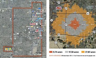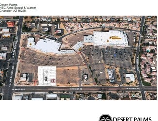 Introducing Desert Palms, Arizona Partners' latest acquisition in the Uptown Chandler Business District, located at the NEC of Alma School and Warner. Just 1 mile from NXP Semiconductor, this center is ideally positioned for local residents and employees. A major exterior renovation is planned for completion in 2025, alongside a newly renovated Walmart Supercenter. With 25K workers within a 5-minute drive and 377K within 15 minutes, the revitalization will bring exciting new dining and retail options. The versatile vacant spaces are ready for a range of uses. For inquiries, contact our leasing team.