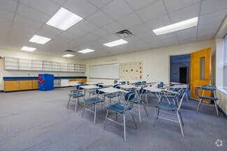 • Includes a large cafetorium with a commercial kitchen, a media center, a library, and numerous spaces for classrooms, offices, or meeting spaces.