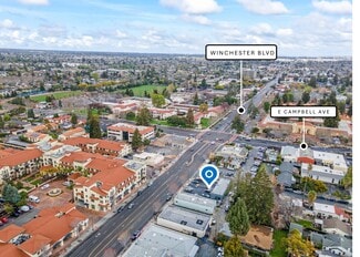 • Located on Winchester Blvd, 1 Block from Downtown Campbell, the Corner of Winchester Blvd & E Campbell Ave