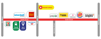 High-visibility end-cap location just one block from the train station and directly across from a major bus stop. Approx. 3,966 SF with build-to-suit options available. Upgraded storefront coming soon. Surrounded by strong pedestrian and vehicle traffic—ideal for retail, restaurant, or service-oriented businesses.