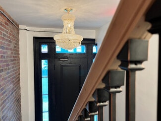 A renovated entry with a chandelier leads to a restored original staircase serving two units per floor. The mix includes three one-bedroom and three two-bedroom apartments, with two of the larger units already leased. At the rear, a yard provides outdoor space for the ground-floor tenant along with two off-street parking spaces. Located just beyond the busiest stretch of Warren Street, the setting offers a quieter residential feel while remaining steps from shops, restaurants, and daily conveniences, with ample street parking nearby.