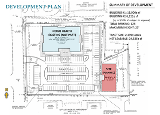 Unique opportunity to purchase the right to develop a new building in an existing condominium project. Building 1 (originally developed for the New Mexico Heart Institute) is currently occupied by Nexus Health. The approved development plan includes the right to construct a second building (Building 2 – Building permit required). Development plans for Building 2 show a Territorial Style, 2-story, 6,125± sf building envelope. The development plan indicates Building 2 could be increased up to 9,525± rentable sf and still support 1 parking space per 200 rentable sf (plan requirement). Any increase in size may be subject approval.