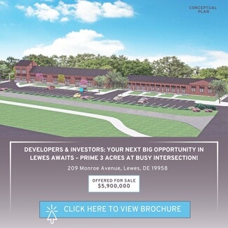 Positioned less than 1/2 mile from downtown Lewes, the Cape May-Lewes Ferry and Cape Henlopen State Park, and at the junction of several bike trails, the property offers excellent access to local residents and tourists alike. The area is amenity-rich, with proximity to popular restaurants and retailers, making it ideal for retail development, commercial/residential mixed use  and hospitality ventures. This is a rare chance to invest in one of Delaware’s fastest growing and most desirable coastal markets.