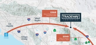 This Net Zero building is designed with state-of-the-art features including 42’ clear height, ESFR sprinklers, and superflat floors. TradeWay Logistics is positioned as a major west coast logistic hub with access to the largest ports in the United States and substantial population centers in Southern California, Nevada, and Arizona. Immediate access to the I-10 Freeway grants the Property a crucial East-West interstate connection that can service the entire Southern United States. The Project’s strategic line of access to Mexico positions it well to benefit from the rapid rise in nearshoring with Mexican imports to the US increasing dramatically in the last 5 years to $476B.