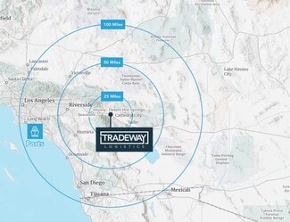 Colliers and Stream Realty are pleased to present TradeWay Logistics, a Class AAA distribution facility totaling +/- 1,061,090 square feet on 55.54 acres of land. The project will be built next door to the newly completed Amazon’s Fulfillment Center which is coming in 2026. TradeWay Logistics is located directly off the I-10 Freeway in Desert Hot Springs and provides direct, strategic access to significant locations in Southern California and all throughout the Southwest.