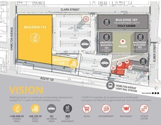 This multifaceted opportunity is primed for a wide range of tenants and organizations. Building 110 offers office suites from 2,840 to 4,905 square feet with wood, brick, steel, and timber structures that evoke a historical yet timeless aura. Building 114 presents an up to 100,000-square-foot, full-building opportunity that will be delivered as life sciences manufacturing and R&D shell space. Building 114 offers 18- to 24-foot clear height to the bottom of trusses, an extensive network of light monitors that wash the facility in daylight, and an open floor plan. Extensive mezzanines are possible, along with secure loading and pad sites.