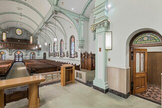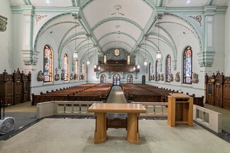Own a piece of Pennsylvania history with this landmark historic former St. Stephens Church This early 20th century former church blends Mission-style, Gothic Revival, and Romanesque architectural motifs creating a unique and impressive facade. Designed by renowned architect William P. Ginther it was built in 1906. Occupying a prominent corner lot in the heart of Oil City, this architectural gem features soaring vaulted ceilings, original stained glass, and serene river views. The expansive interior offers immense potential for adaptive reuse, complemented by a massive private parking lot and a full basement equipped with a banquet room and a large commercial kitchen. While the building requires renovation and attention, it boasts an original slate roof and a newer boiler system, providing a solid foundation for restoration. Whether you envision a boutique hotel, a unique residential conversion, or a vibrant community hub, this is a rare opportunity to re-envision a historic treasure and contribute to the revitalization of Oil City.