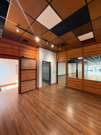 208 E MAIN: A ~3,656 sf open retail or office space with picture windows, high visibility for showcasing advertising or merchandise. This space includes 1 bathroom downstairs and 2 bathrooms upstairs with a break room/office and an additional room that can be used as a conference room or large office.