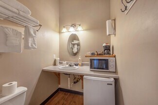 Location, location, location doesn't begin to tell the story of this very unique property. River Run Lodge occupies an excellent location near the Deschutes River in East Maupin’s recreation/commercial area. It is near the Deschutes River bridge, just ½ block off of Hwy. 197. Perched on a hillside overlooking the river and canyon, the Lodge is within easy walking distance to the river, several restaurants, rafting businesses and the Maupin City Park. It has some features of a small hotel but offers the intimacy and functionality of a residence. It includes 6 self-contained sleeping rooms, each having private outside entrances and private bathrooms, along with two full kitchens and a ½ bath in the common room. One of the sleeping rooms is currently used as a storage room, but could easily be converted for rental, with municipal approval. There is a large (700 sf +/-) common room downstairs, which includes a kitchen, dining area and living room/lounge area, with an open floor plan. Off the kitchen is a 150 +/- sf laundry room, including two sets of washers and dryers, a folding table, a double laundry sink and shelving for storage of linens and lodge supplies.