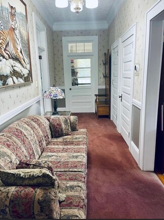 Beautiful Property Located within Walking Distance to Downtown Morganton. Prime Location for Office Space and Plenty of Parking. Spacious and Historic building. Would make a perfect corporate headquarters, unmatched grounds for outdoor events. Perfect for medical office or attorney office. Lower Level was last used as a VA office. Unique building with lots of potential. Will sub divide 3,500 SQ-FT Main & Top Level Total building SQ FT: 7936 all available or subdivide.