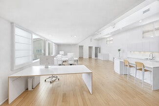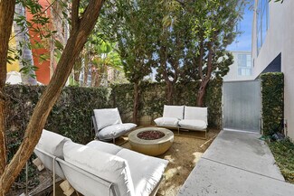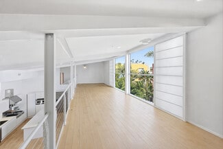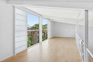 Live, work, and play on Abbot Kinney in the heart of Venice in this 3,200+ SF iconic architectural live/work residence designed by world-renowned architect Mark Mack and located in the coveted Bay Cities Lofts. Featuring a private wraparound garden, parking for 3+ cars (two car private garage with direct access + exterior spaces), and rare residential and commercial flexibility, this light-filled townhome places some of Los Angeles’ best dining, boutiques, coffee shops, and creative energy right at your doorstep. Spanning three expansive levels, this architectural townhome is one of the best values in Venice, offering soaring ceilings, walls of glass, and voluminous space where architecture meets industrial chic. Ideal for a creative office, architectural firm, post-production studio, or a designer home curated to your vision, the open layout adapts effortlessly to any lifestyle. The main living level features an expansive open-concept design with hardwood floors, custom cabinetry, and high-end appliances, while the primary suite is thoughtfully positioned for privacy alongside two additional flexible bedrooms. A dramatic top-level loft with floor-to-ceiling windows provides an inspiring office or studio, and a first-level flex space with en-suite bath opens directly to the private wraparound garden for seamless indoor-outdoor living. With in-unit laundry, a private two-car garage, and additional secured parking, this serene and endlessly adaptable residence offers a rare opportunity to own a true architectural statement with Abbot Kinney as your front door.