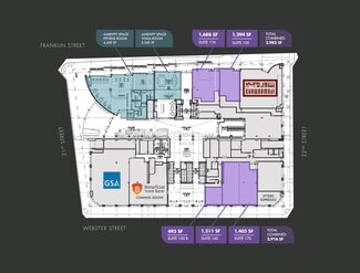 Center 21 is a modern office complex situated in the vibrant Uptown district and at the heart of the Lake Merritt and Uptown markets, offering approximately 6,000 SF of ground floor retail across two distinct buildings—2100 Franklin Street and 2101 Webster Street - all below 690,000 square feet of Class A office space