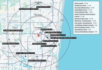 11,000 SF Ambulatory Surgery Center For Lease. Features two dedicated elevators, full building backup generator, 14' ceiling heigh, and valet parking. Parking ratio of 8/1,000 SF. Just minutes from major facilities including Baptist Health Hospital, West Boca Medical Center, UHealth Boca Raton, and Glades Medical Center.