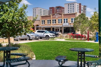 211–215 E Hutchison St is a centrally located mixed-use property offering a total of 8,100 square feet of space in the heart of San Marcos. Suite 215 stands out with its elevated second-floor position, exposed brick walls, and scenic city views. Its proximity to both the university and the downtown Square makes it ideal for businesses seeking high foot traffic and visibility. The flexible layout and immediate availability make it a great fit for office, studio, or boutique retail use.