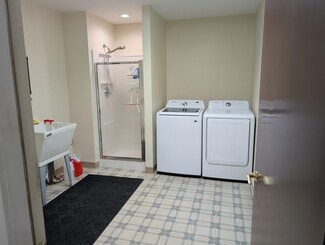 Brand-new warehouse restrooms, including full shower, washer & dryer area
