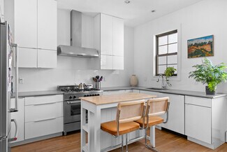 The property is configured as a two-unit residence over store, featuring a full-floor two-bedroom, one-bath apartment with private outdoor space, a spacious 3.5-bedroom, two-bath penthouse with a rooftop terrace, and a ground-floor retail space that includes a private yard and a finished lower level. This thoughtful layout offers exceptional income potential while providing the flexibility to occupy part or all of the residential section. Whether maintained as a high-performing investment or converted into a luxurious single-family home, the design and scale of 212 Franklin rival the finest townhouses on the market.
