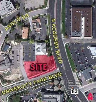 1.05 acre lot with Academy Frontage. This property sits at the entrance to University Park just south of Vickers and Academy. Nice level lot and has views of Pikes Peak. Owner has approved plans with Regional Building Department for a 5,000 square foot building with plenty of parking. The zoning is OC.