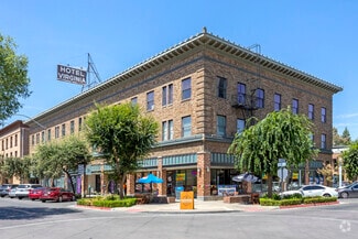 Historic Virginia Hotel 1937 building restored in 2014 and converted into restaurants, office, and creative space.