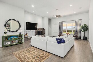 Built to the highest standards, this home offers spray foam insulation, Bryant multi-speed HVAC systems with remote access, and upgraded electrical for year-round efficiency and safety. The open, light-filled floor plan features a spacious main living area, large windows framing the countryside, and a secondary living space with its own kitchen, perfect for multi-generational living or hosting guests. Additional bedrooms and two full baths provide ample space, while a wraparound porch with ceiling fans is ideal for enjoying Texas sunsets.