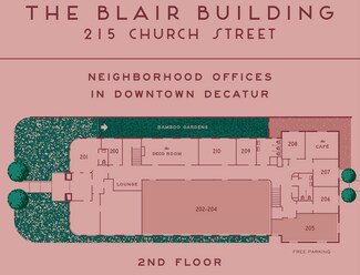 Built in 1939, and tastefully renovated in 2024, 215 Church was honored for its historic preservation with a City of Decatur Design Award. The building has enjoyed 84 years of success as a neighborhood office building with 44 parking spaces, green space, character and charm. Approachable, easy, cool, memorable, historic, convenient and with an excellent location in close proximity to The Square.