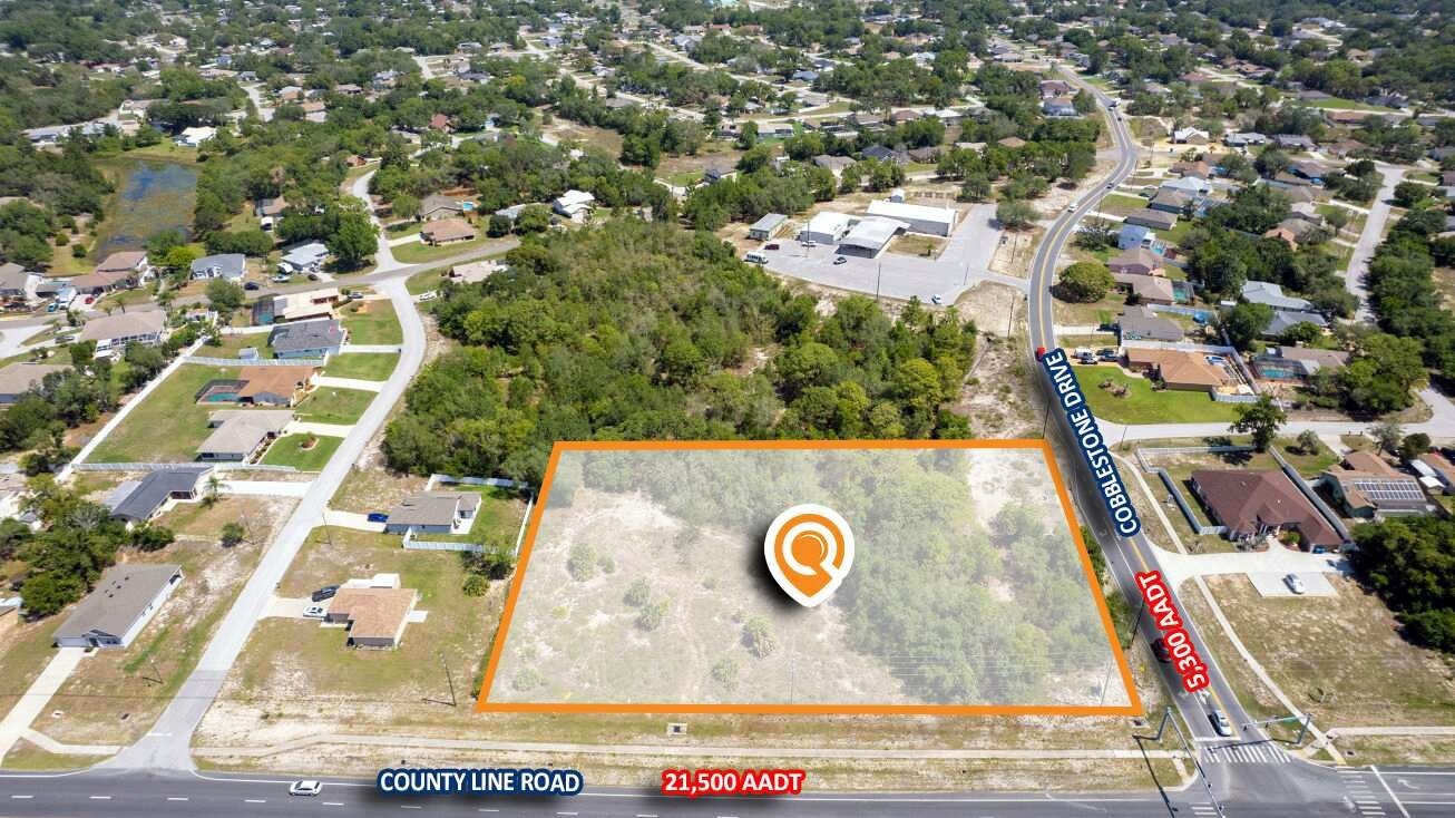 • 215 Cobblestone Drive is an opportunity to secure 2 acres of commercial land ready for development on a desirable corner in Spring Hill.