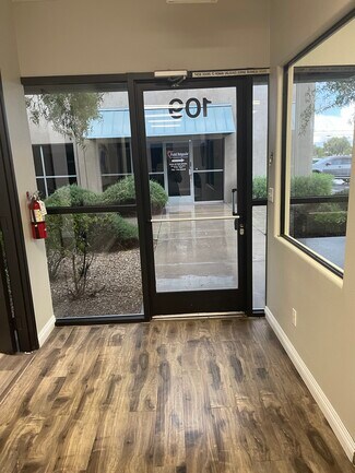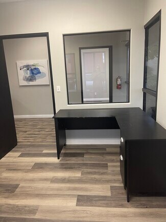 Newly remodeled professional office suite available in a well-maintained office property with excellent access and strong visibility in the Las Vegas Airport submarket. Suite 109 offers a functional layout ideal for professional services, training, or administrative use, featuring five private offices with glass interior windows that create an open, modern feel. The suite includes a reception/waiting area, a conference room, break room/kitchen, open classroom-style workspace, plus dedicated data and storage space. Community restrooms are conveniently located just outside the rear door in the courtyard. Tenant may install window/door decals and has the option for prominent building signage, subject to landlord approval. Lease terms are straightforward and budget-friendly at $3,200 per month modified gross. Rent includes CAM, water, and trash. Tenant is responsible only for electricity and liability insurance. The property is conveniently located near Las Vegas Blvd and Gillespie with easy access to both I-15 and I-215, excellent landscaping, and is directly across the street from the Harry Reid International Airport car rental facility making it an ideal location for businesses that value accessibility and proximity to key transportation corridors.