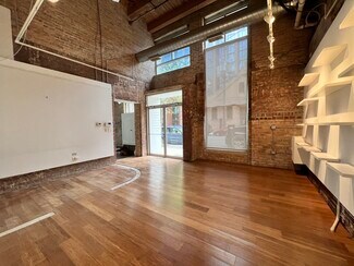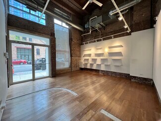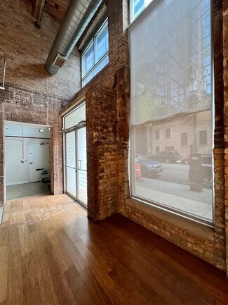 Retail/office opportunity, with tenant neighbors such as Google and McDonalds Corporate. Large floor to ceiling windows and storefront provide great natural light and exposure. 18 foot timber and beam ceiling and exposed brick. Two rooms and one half bathroom. First floor entrance from sidewalk. Prime West Loop location.