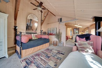 At the heart of the estate is the newly constructed Main Inn, completed in 2020 at a cost of $1.8 million. This elegant structure offers a grand indoor venue space in the great room, as well as a distinctive subterranean sanctuary perfect for a variety of uses. The property also features eight thoughtfully designed guest suites and cottages three stylish new suites adjacent to the Main Inn —  providing ideal lodging for guests or short-term rental opportunities. In addition, a one bedroom home is ideal for owners/managers quarters.