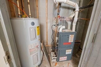 217 and 219 East Preston have been consolidated into one legal lot but maintain separate physical systems. The five-bedroom unit at 217 is heated by radiators and has dual-zone central air. The five-bedroom unit at 219 is served by a gas-fired furnace with central air. The terrace-level one-bedrooms are heated by baseboards—either electric or hot water circulation. Interior water supply lines have been upgraded to copper, and observable drain lines are PVC. Both buildings have their own 50-gallon gas-fired water heater.