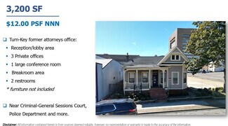 Turn-Key Office in Downtown Memphis Office near Renasant Convention Center, Shelby County Criminal Justice Center, Memphis Police Department and more. Address: 217 Exchange Ave., Memphis, TN 38105 Available Space: 3,200 SF Lease Rate: $12.00 PSF NNN Position your business in the heart of Downtown Memphis with this turn-key former attorney’s office ideally suited for legal, professional, or administrative users. The efficient layout offers a functional mix of private offices and collaborative space, making it ready for immediate occupancy with minimal buildout required. The suite features a welcoming reception and lobby area, four private offices, and a large conference room suitable for meetings, client consultations, or team collaboration. Additional amenities include a breakroom area and two restrooms, providing convenience for both staff and visitors. Located within close proximity to the Renasant Convention Center, the Shelby County court system, and the Memphis Police Department, the property offers a strategic location for legal professionals, consultants, and service-based businesses seeking accessibility and visibility in Downtown Memphis. *Furniture not included. Building highlights: Turn-Key former attorneys office: Reception/lobby area 4 Private offices 1 large conference room Breakroom area with Washer & Dryer 2 restrooms * furniture not included