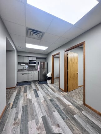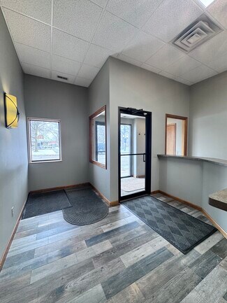 This commercial office/retail building is just off the Macomb downtown business district, offering just over 2200 sq ft of office/retail space on the main level. Entering the building, you find a large reception/office with a waiting area, six other private offices that average 13x10, some larger, a kitchenette/break room, and two half baths, all of which have great potential for retail. The upper level of the building has a 20x17 room with windows overlooking the park, which was used as an office. The upper level of the building also has a 780 sq ft apartment, currently a one-bedroom loft-type apartment, with a large living room, kitchen, bath, and walk-in closet. Could use the front office area as another bedroom—lots of potential for income.