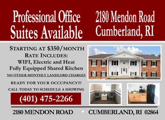 Well Maintained Office Bldg facing Mendon Rd , Rt 122.. Consisting of 3 Offices, 1 Conference room, Kitchenette, 2 Bathrooms, Easy access to I-295 Ideal uses: Legal, Accounting, Medical, Dental. Chiropractor & many others.