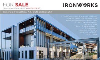This is a rare opportunity to acquire a beautifully improved light industrial space within the award-winning Ironworks development. The property features high 20-foot ceiling heights and a functional mezzanine office, providing both space and flexibility for various business needs. It includes direct grade-level loading for convenient operations and is equipped with 3-phase power to support heavy machinery and equipment. The impressive office and showroom build-out is move-in ready, offering a professional and polished environment from day one.