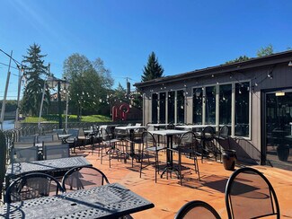 The two-story property includes some existing furniture, fixtures, & equipment, which includes a hood with fire suppression and two walk-in coolers, an outdoor patio with covered dry bar, private event space with limited service bar, and multiple dining areas. The first floor is generally wide-open floor space to accommodate a new bar and dining room space in any configuration desired by the operator. There is also ample back of the house storage and office space included.