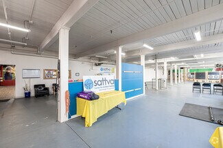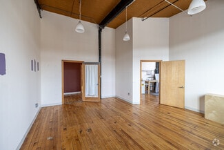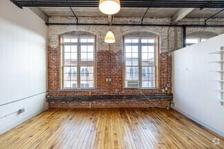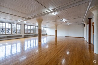 This sprawling converted factory encompasses over 160,000 square feet and features studios, workshops, gallery spaces, and loft-style suites ranging from 2,100 to 4,330 square feet. Redesigned with soaring ceiling heights, redone floors, oversized windows, exposed brick and beams, open layouts, loft offices, and white box finishes, the building blends industrial character with modern functionality. The opportunity lies in joining a thriving hub for artists, designers, entrepreneurs, and small businesses who benefit from flexible layouts, heavy power, generous natural light, and the ability to scale within a building offering several combined studio configurations.