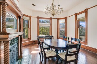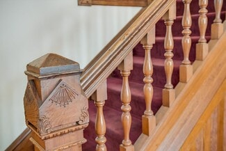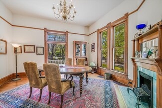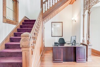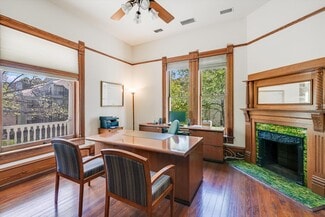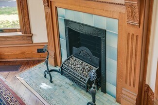 • Beautifully-appointed office and conference areas with original pine flooring, moulding and custom tile accents on its four fireplaces