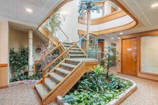 One of the standout features of this building is the beautiful atrium located in the center of the interior, featuring live plants that create a welcoming and relaxing environment. This space is perfect for receptions or informal meetings, and it adds to the overall appeal of the building.