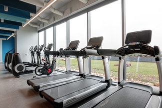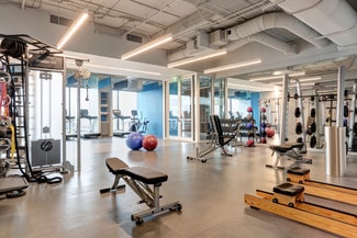 Club quality fitness center with lockers and showers.