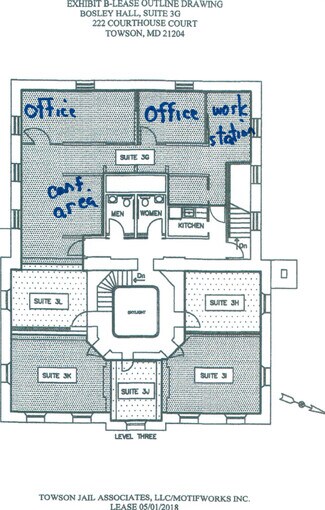 CREATIVE OFFICE SPACE FOR LEASE IN TOWSON - The rehabilitation of the Old Towson Jail into an office building was honored by the Maryland Historical Trust as part of the organization's 2012 Maryland Preservation Awards. The rehabilitation of the historic jail, now known as Bosley Hall, was cited as, "an outstanding example of a public/private partnership undertaken by the Baltimore County government." The trust gave the project its award under Preservation Partnerships, and noted the collaboration of Baltimore County government; developer Towson Jail Associates, which was created for the rehabilitation project; Azola & Associates Inc.; and others for the project.The Baltimore County Department of Recreation and Parks intended to spend $700,000 to stabilize and mothball the landmark building when it received a proposal from Towson Jail Associates to lease the property, and rehabilitate and operate the building as offices. The county agreed to the plan, and Towson Jail Associates embarked on a rehabilitation of the building which preserved historic features, added state-of-the-art technology, and utilized sustainable building practices. The 160-year-old, three-story building, on the corner of Bosley Avenue and Towsontown Boulevard, was converted into office suites and opened in February 2011. "The ... landmark was ... renamed Bosley Hall, in honor of the Towson physician who originally donated the land for the jail building and courthouse."The building is listed on the National Register of Historic Places.