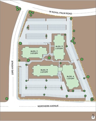 Comprised of four separate buildings, Phoenician Plaza is located in the Black Canyon Corridor of Phoenix at the signalized corner of West Northern Avenue and North 23rd Avenue, approximately 1/8 mile east of Interstate-17.