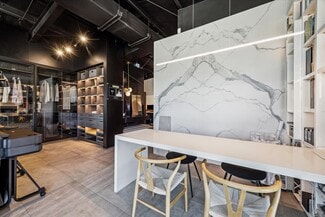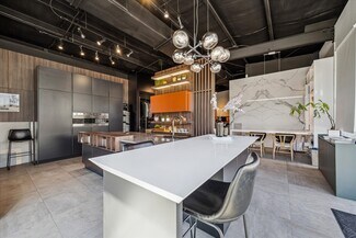 Most of the interior furnishings and cabinetry are for showroom purposes, and can be taken out to create an open floor plan.