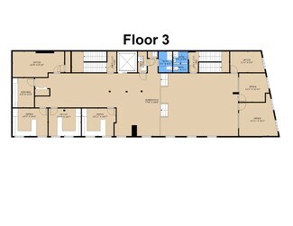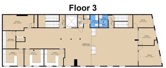 3rd floor 3,400 SF offers 7 private offices, 2 restrooms, kitchen and large two-level 77 x 30 foot open area. See floor plan.