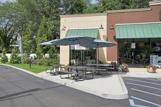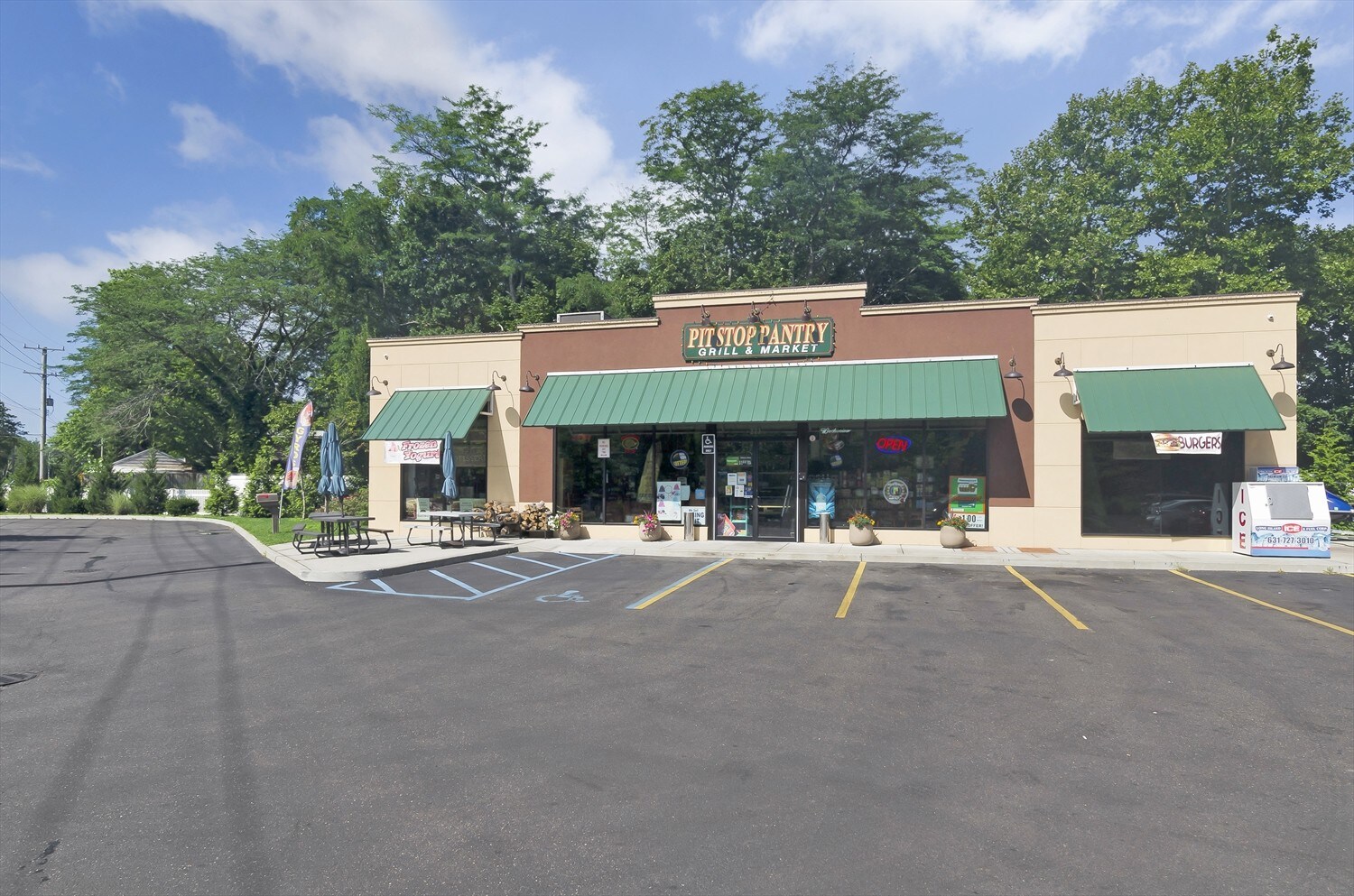 Indoor seating includes 4 tables with 8 seats total and additional seating at outdoor picnic tables.