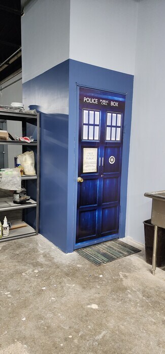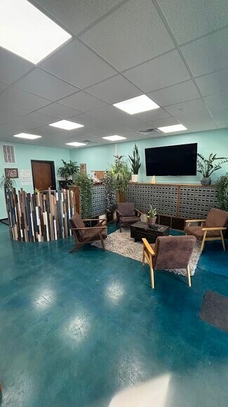 Fully Renovated. 3 phase power, New electrical systems with LED lights, Fire sprinklers, HVAC, and more. Built in office structures, office areas and breakroom. Warehouse space with back restroom, water fountain and utility sink. 2 bay doors, front and back. Front loading dock.