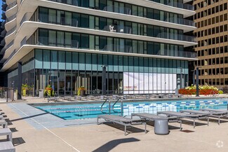 The building features over 110,000 square feet of hotel-quality amenities, including an 80,000 SF outdoor deck with a lap pool, running track, and fire pits, as well as indoor offerings like a basketball court, media room, and spa facilities. Residents also benefit from access to select Radisson Blu hotel amenities, further elevating the luxury experience.