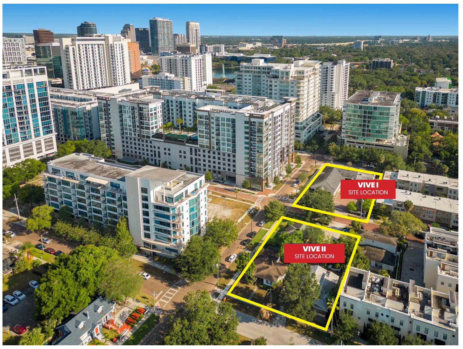 Includes Assemblage of 205 S Eola, 225 S Eola, 601 E Jackson and 609 E Jackson Currentl income from 8000 SF Office, 1700 SF Office and two single family homes all rented Investor Group owns both sites • Seller is open to structuring a Joint Venture with a highly successful multifamily developer or sale • VIVE Tower l, 205 S Eola Dr, Orlando, FL • VIVE Tower ll, 225 S Eola Dr, Orlando, FL • VIVE l is .50 acres with street frontage on 3 sides. Proposed for 244 units, plus retail Building 1 Max. 13 Stories Total Units: 244 Typical Floor Area Rentable 12,000 SQ. FT. Gross 15,000 SQ. FT. Building 2 Building SQ. FT. Retail 7,200 SQ. FT. Amenity 7,000 SQ. FT. Gross 17,000 SQ. FT. Parking 9 Floors 294 Spaces • VIVE ll is .50 acres with street frontage on 3 sides. Proposed 9 level parking structure with 294 spaces, plus retail • Development plan includes first floor for retail and restaurants. Possible roof restaurant • VIVE l & ll are located in downtown Orlando’s highest rental rate market area • Project is located 2 blocks from Lake Eola Park and dozens of restaurants, cafes, shops and entertainment.